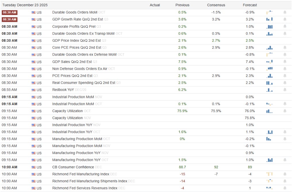 Yesterday, we reviewed the technical backdrop of the market as we enter the low-volume holiday trading period. Of note, over the weekend, I read several articles discussing how the recent market performance was evidence that “Santa Claus would fail to visit Broad & Wall.” While nothing is guaranteed, I found the articles interesting in that the “Santa Claus” rally has not even started yet. The official start date (the last five trading days of December) is December 24th (albeit it is only a half day) and continues through the second trading day of January.