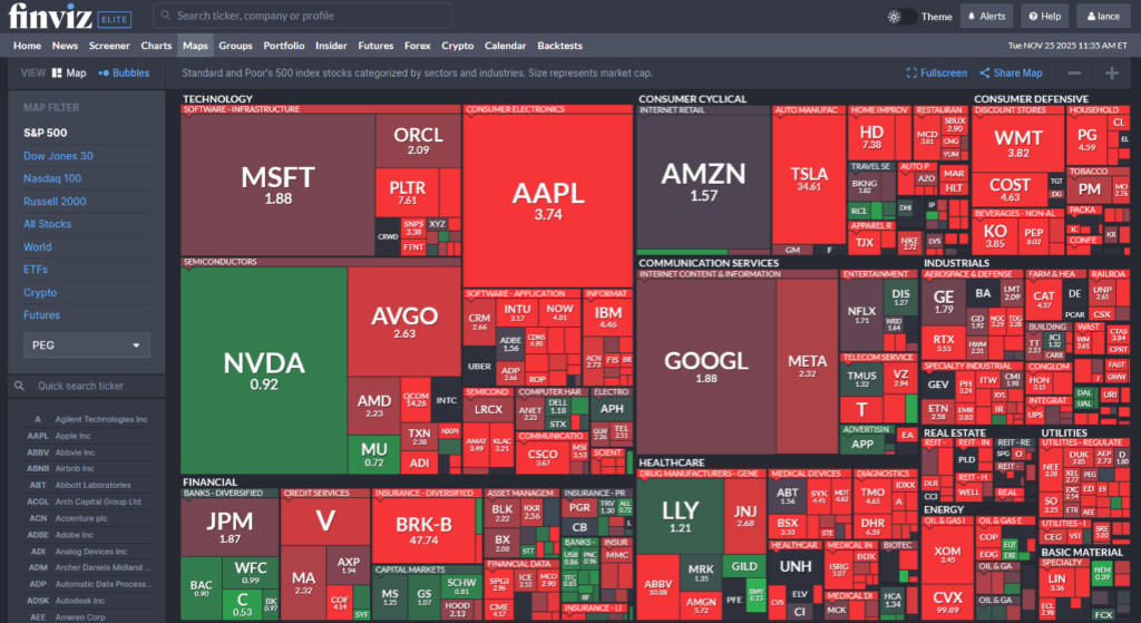 We share these examples to help you appreciate that the P/E ratio is a great valuation measure, but without context for expected growth, it can be very misleading. The FinViz table below shows the PEG ratios for S&P 500 stocks.
